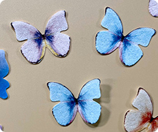 従来の可食シートに比べて厚みがあるため、割れたり破れたりしにくいのが特徴です。貼る・のせる・差し込むなど、多様な使い方が可能です。